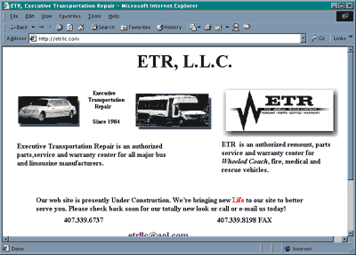 ETR is an Altamonte Springs based executive transportation, limousine and emergency vehicle repair and maintenance company. They service all manner of vehicles. We developed